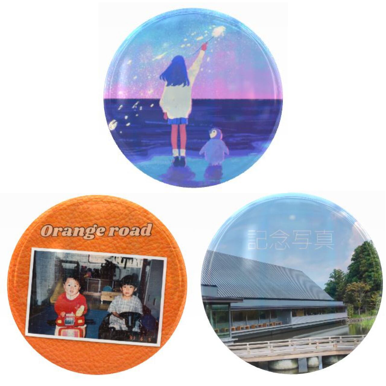 57mm缶バッジ(安全ピン) 「記念写真」「天の川」「オレンジロード」「裸の太陽」の中から3個好きな組み合わせで、ご自由にお選びいただけます!